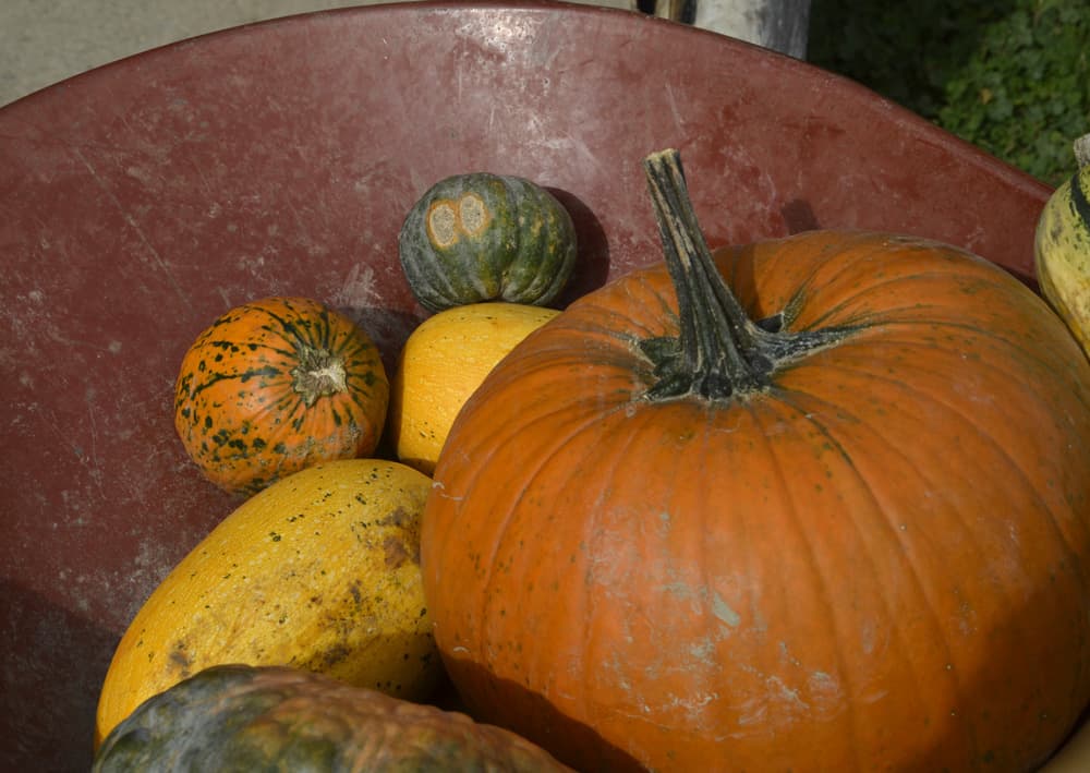 Vous pouvez parcourir les champs de courges et choisir celles que vous voulez. Il suffit de prendre une brouette!