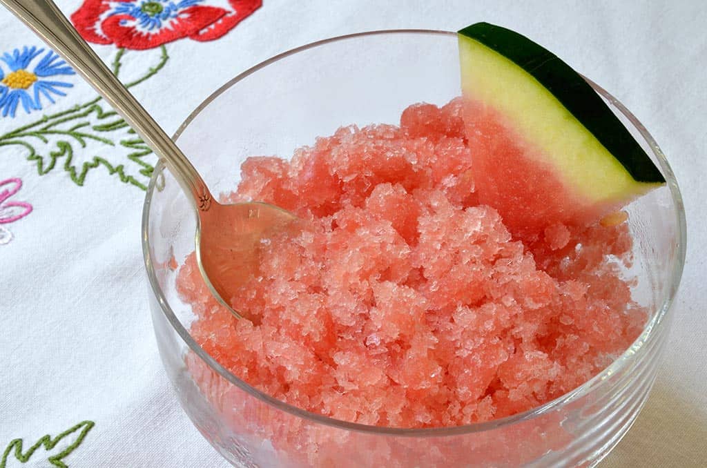 Lorsqu’il fait chaud rien de tel qu’un granité bien rafraîchissant. C’est très facile et rapide à préparer. Et, pour qu’il soit bien désaltérant, il faut éviter de beaucoup le sucrer.